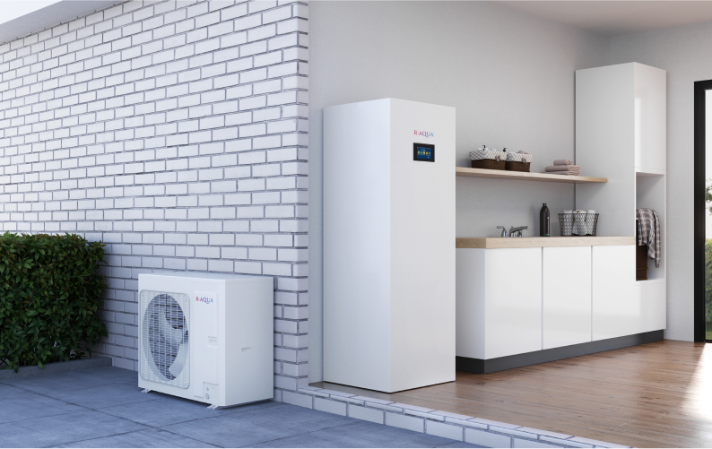 Bombas de calor Ar/Água Inverter R32 do tipo All in One – combinam a sustentabilidade ecológica e energética com a conveniência de uma unidade compacta, com depósito de 185 litros integrado